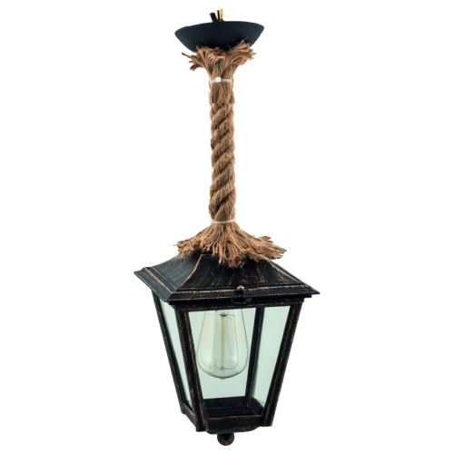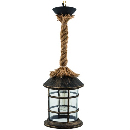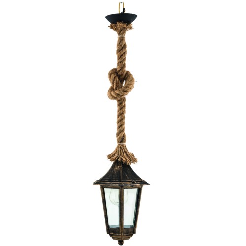 LIDO Φωτιστικό Πλαστικό Εξωτερικού Χώρου Κρεμαστό 1897 Με Καλώδιο-Σχοινί Μαύρο-Χρυσό Κωδικός:133696